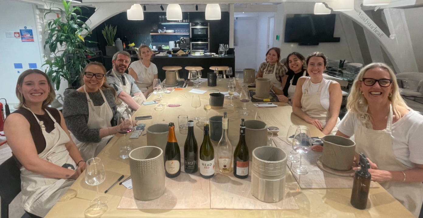 My wine and pottery workshops in London and beyond combine hands-on clay sessions with curated wine tasting, creating a relaxed and immersive creative experience.